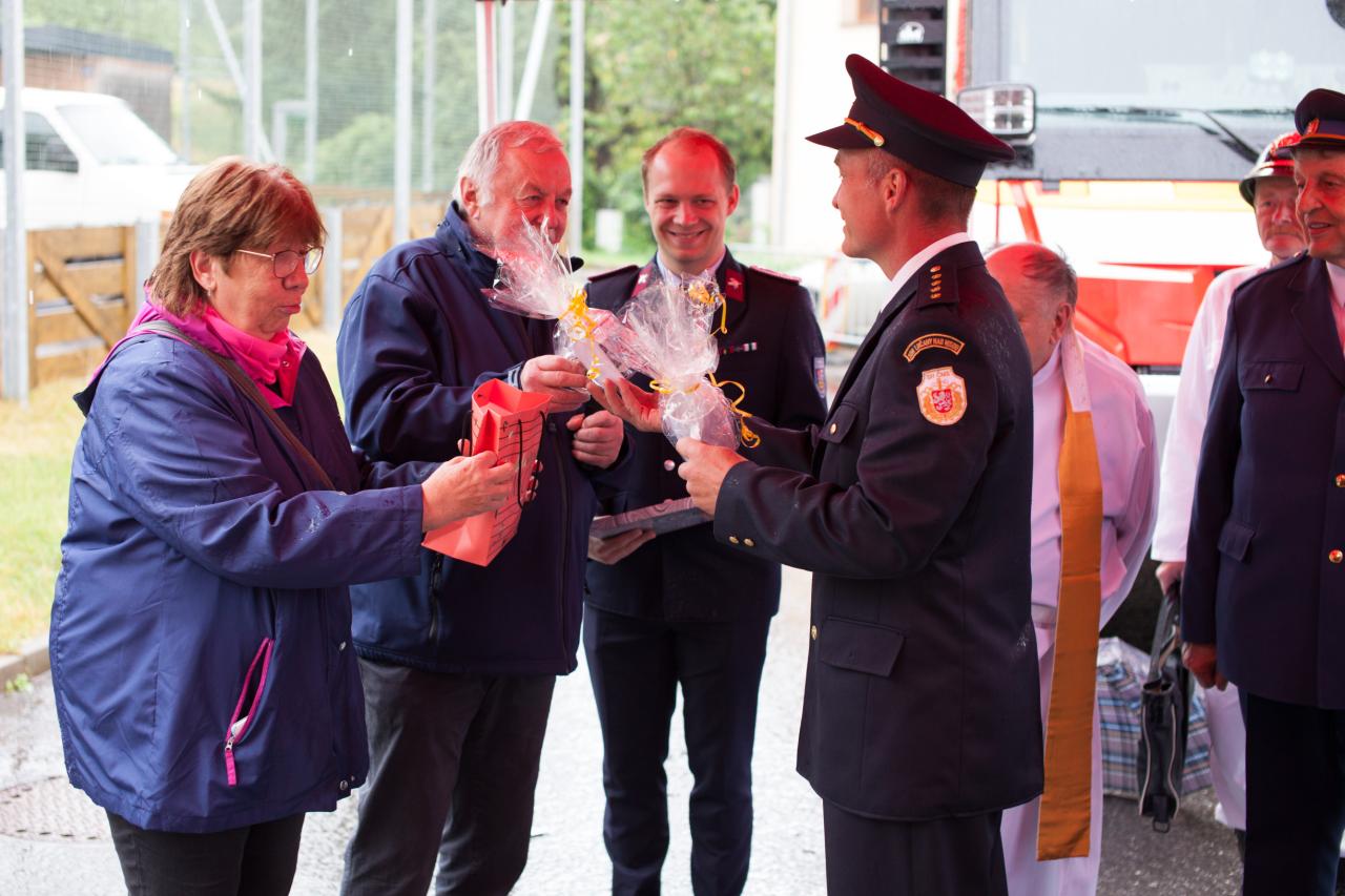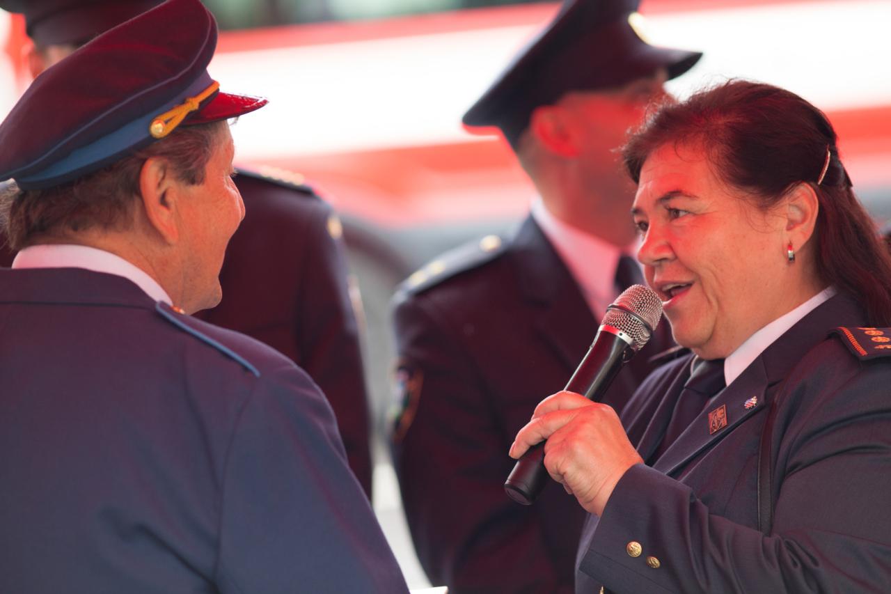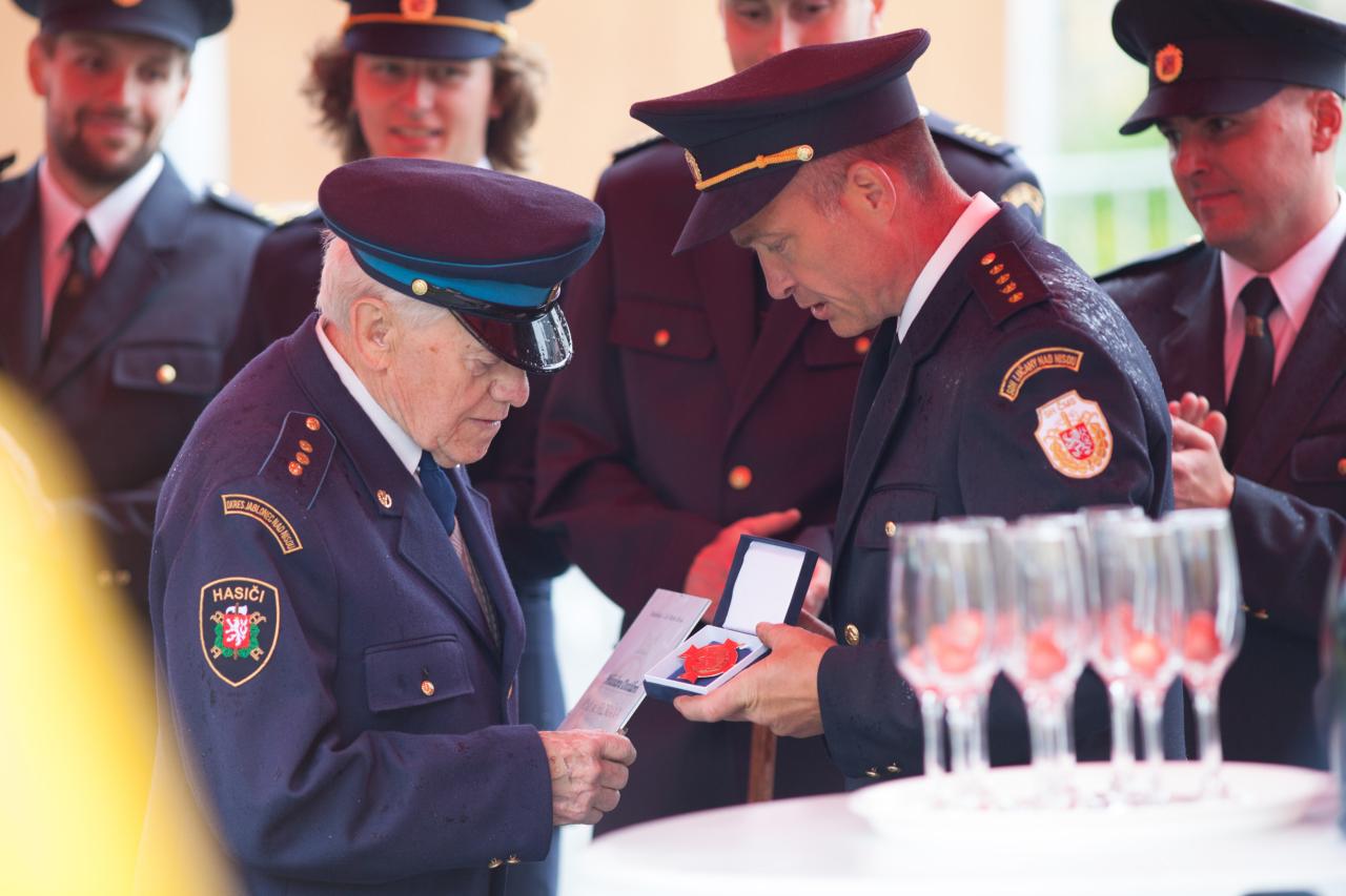 Hlavním bodem programu bylo předání a požehnání novému hasičskému vozu a náš veterán oslavil 100 let.